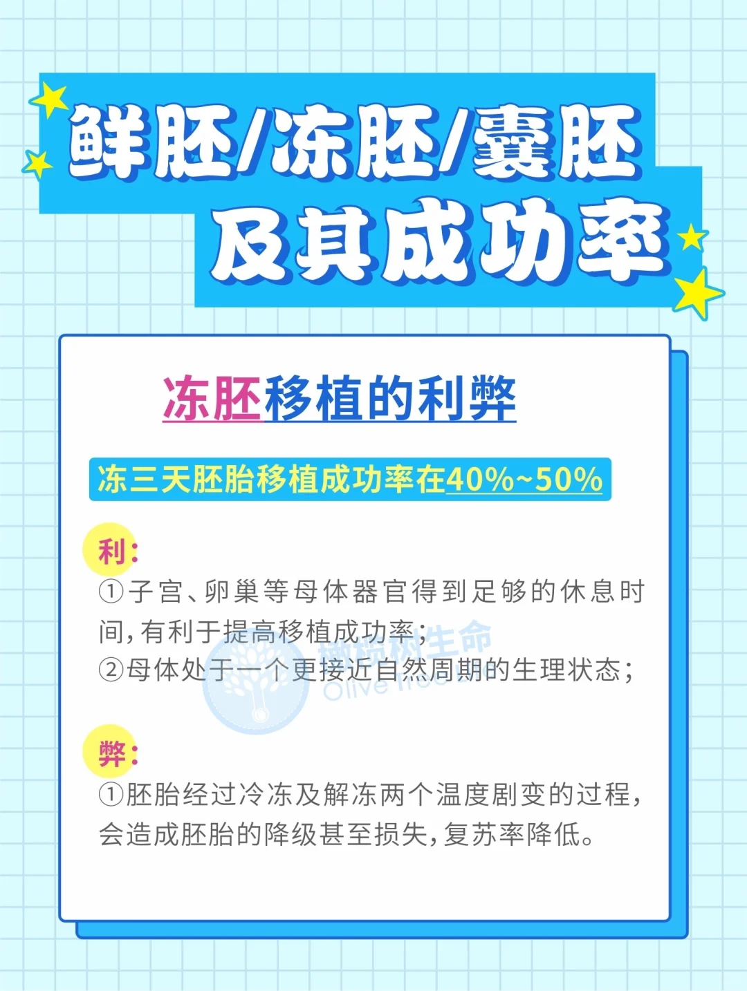 了解试管婴儿的各种胚胎类型,助您开启求子之路,为迎接新生命做好准备。本文将为您详细解析鲜胚、冻胚、囊胚的移植选择,助您提高助孕成功率。姐妹们,在试管婴儿的道路上,选择真的太重要了!😭今天给大家整理一份关于鲜胚、冻胚、囊胚的科普笔记,帮助大家更好地了解三者的区别和成功率,为您的辅助生殖之旅提供更明智的...[查看阅读]